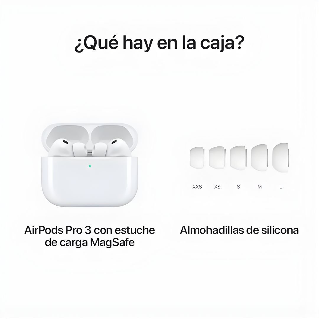 Los nuevos AirPods Pro 3 han llegado para revolucionar la forma en que disfrutas de tu audio favorito. Con una calidad de sonido mejorada, tecnología avanzada de cancelación activa de ruido y un diseño cómodo, estos auriculares son ideales para quienes valoran tanto la funcionalidad como la experiencia auditiva de alta gama. ¿Estás listo para sumergirte en una experiencia sonora única?